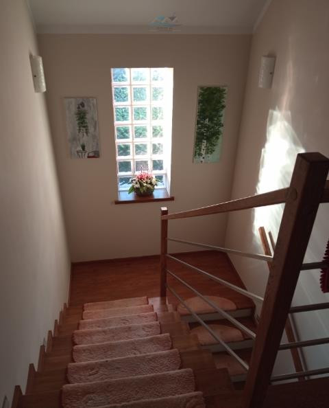 W domu znajdują się trzy sypialnie, salon, gabinet, otwarta kuchnia, dwie łazienki, holl, taras, balkony, pomieszczenia gospodarcze, piwnica.