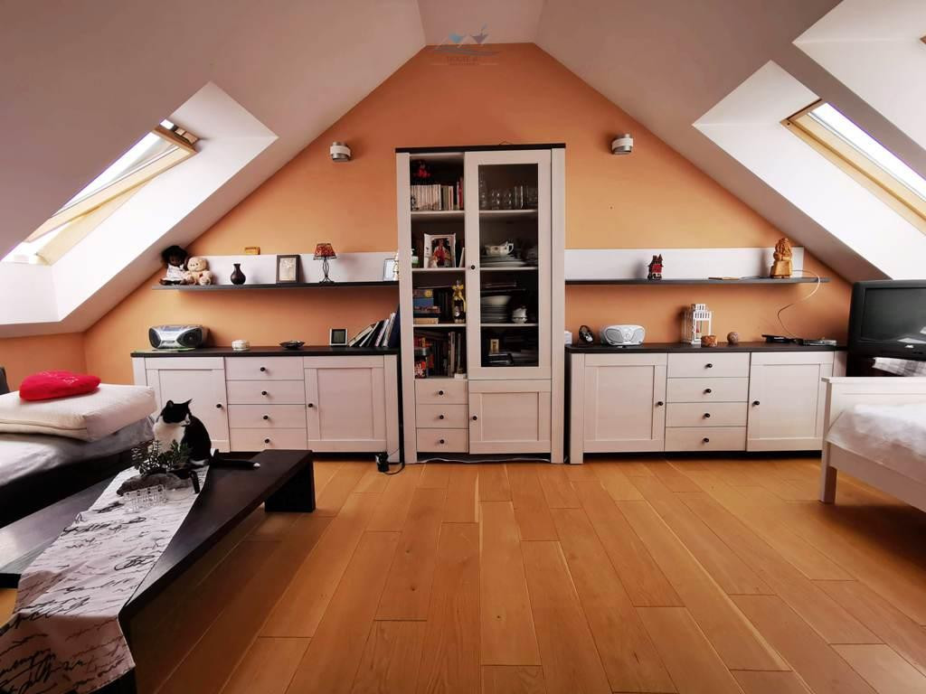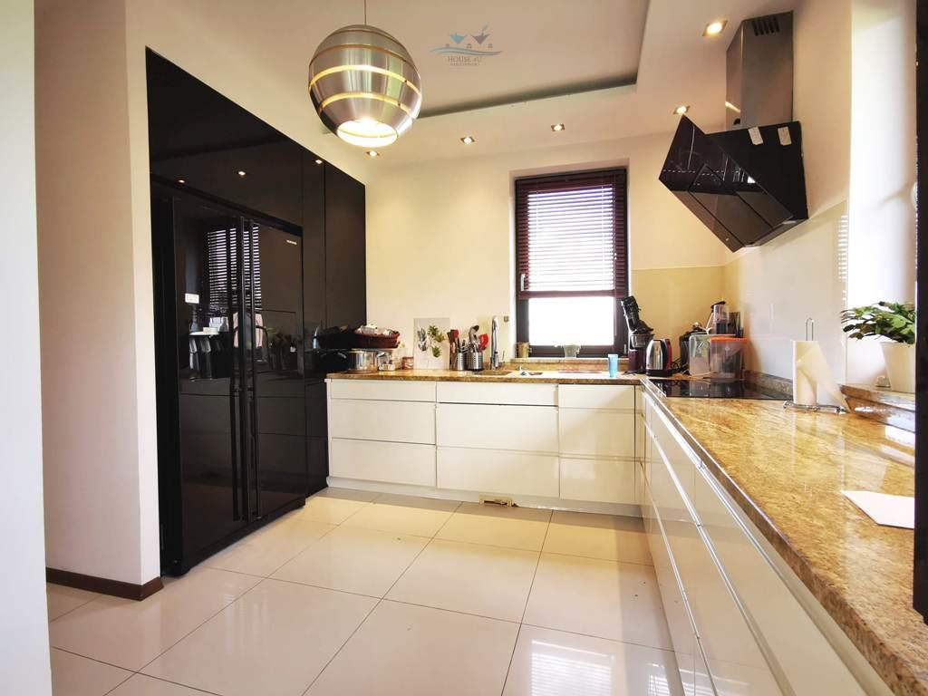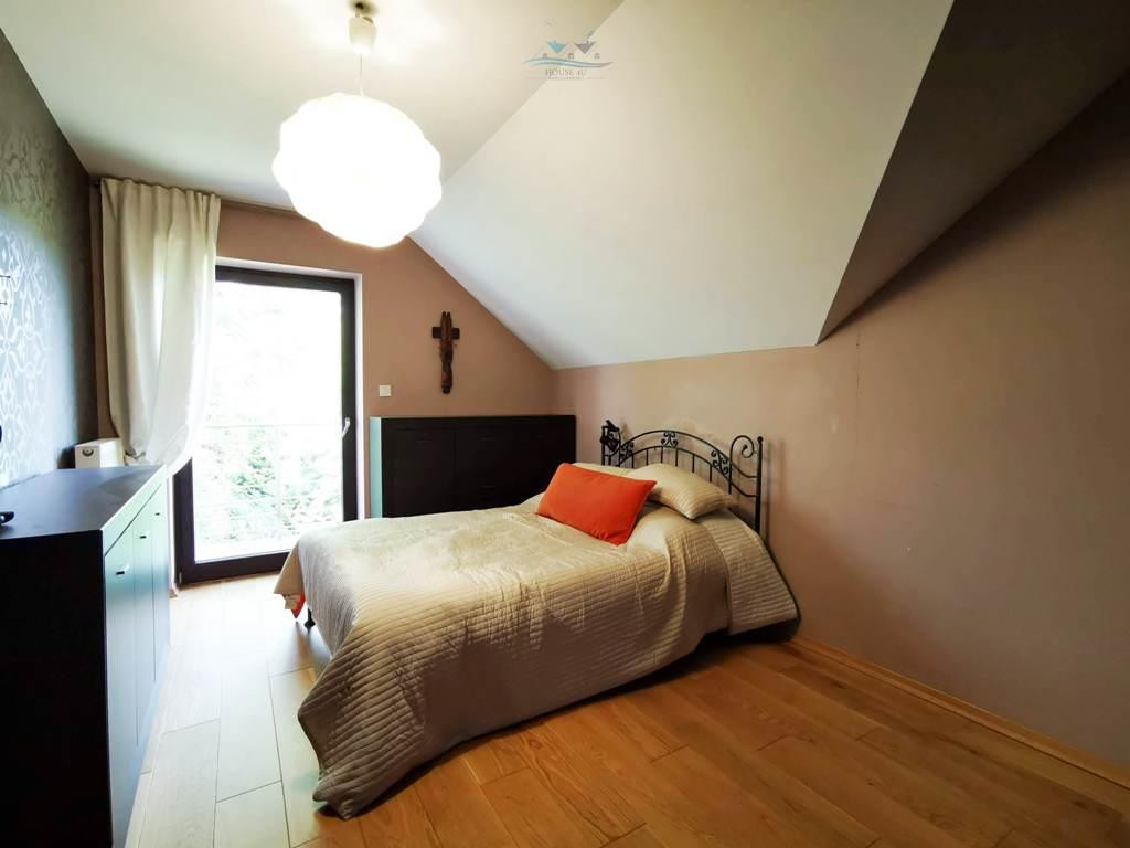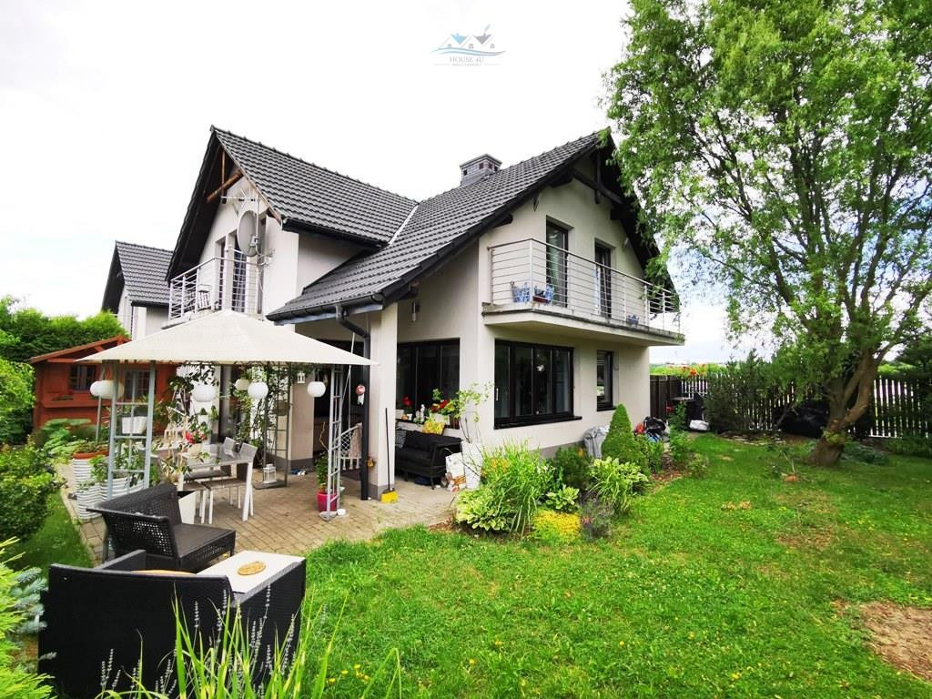Dom ma powierzchnię 185m2, posiada wbudowany w bryłę garaż oraz miejsca postojowe przed budynkiem, ogród z oczkiem wodnym i kaskadą, a całość jest ogrodzona i położona na kameralnym i zamkniętym osiedlu domów jednorodzinnych. Budynek dwukondygnacyjny z oknami w trzech kierunkach świata, na parterze znajduje się kuchnia, jadalnia połączona z przeszklonym salonem z kominkiem i wyjściem na ogród, łazienka z WC oraz hol, wiatrołap i garaż. Na piętrze znajdują się 4 sypialnie (3 z balkonami) oraz łazienka z WC.