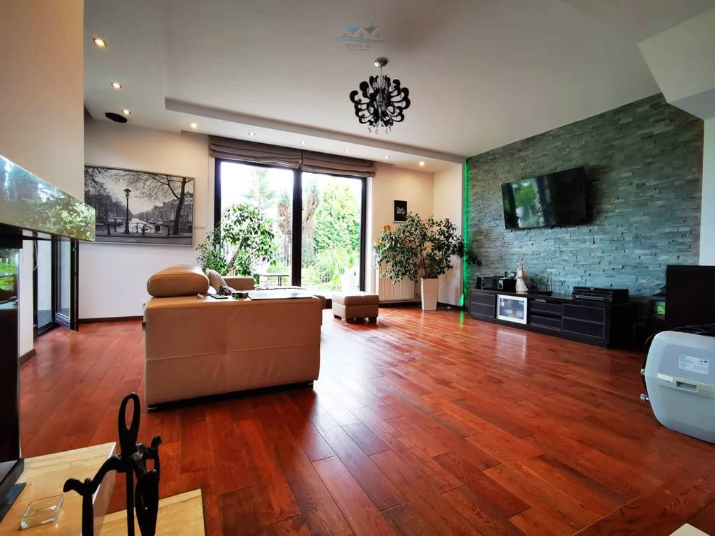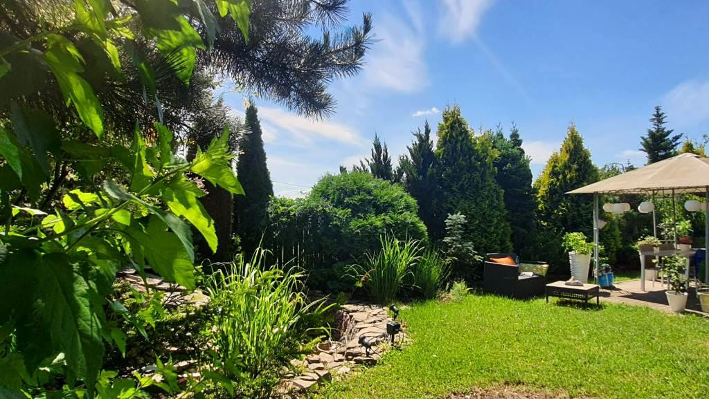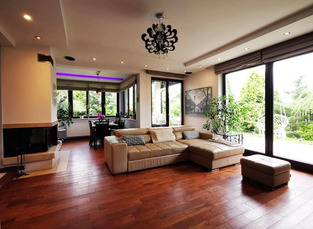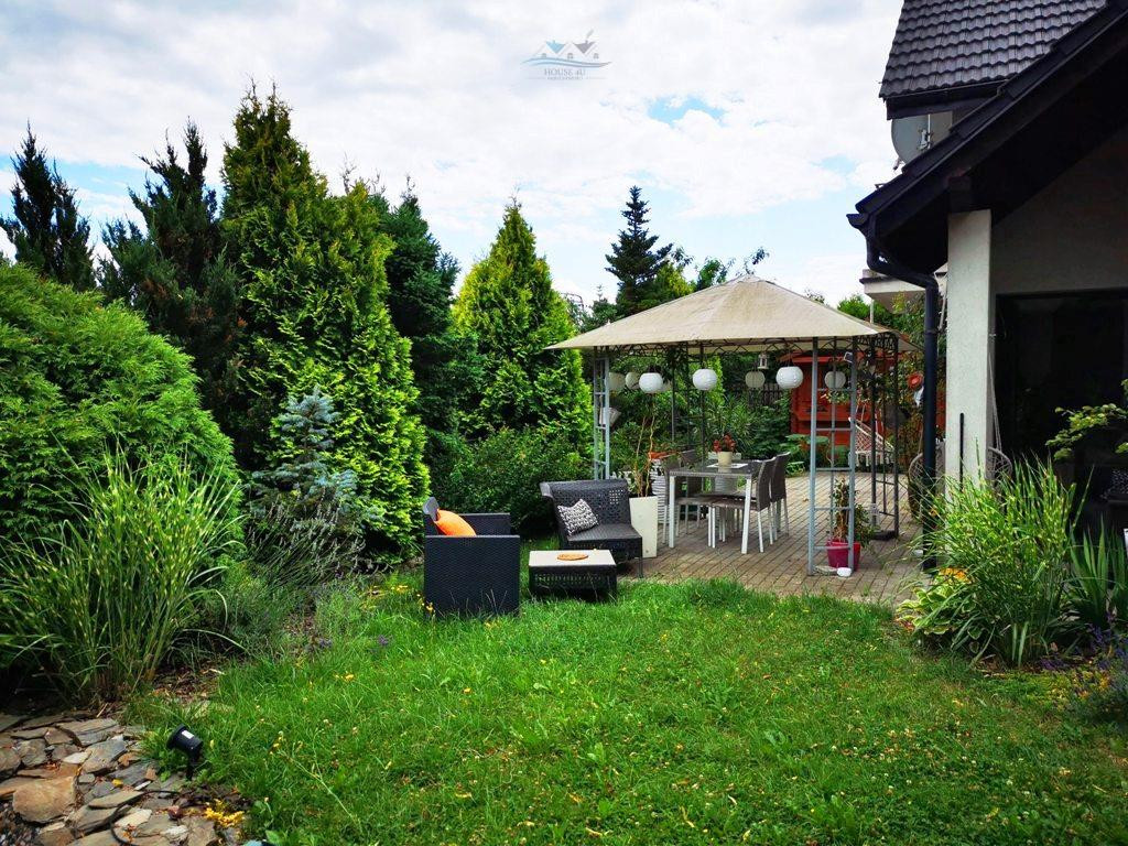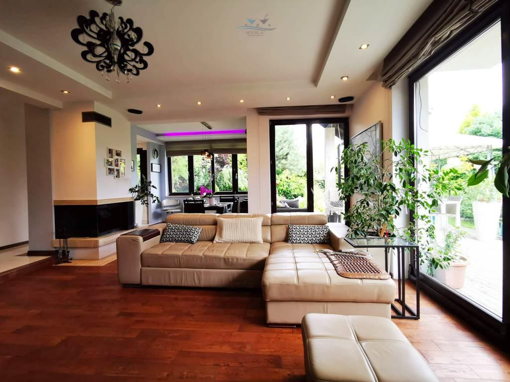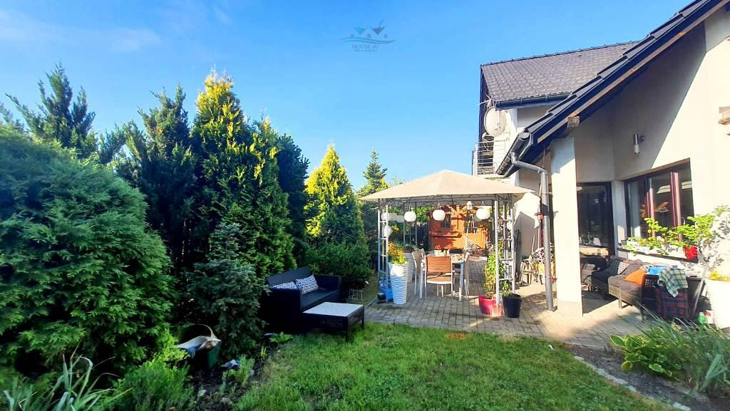 Przestronny i jasny dom w zabudowie bliźniaczej (łączący się garażem z budynkiem przyległym) posadowiony na dużej i zagospodarowanej działce o powierzchni 6a zlokalizowanej w podkrakowskich Zielonkach - ul. Krakowskie Przedmieście