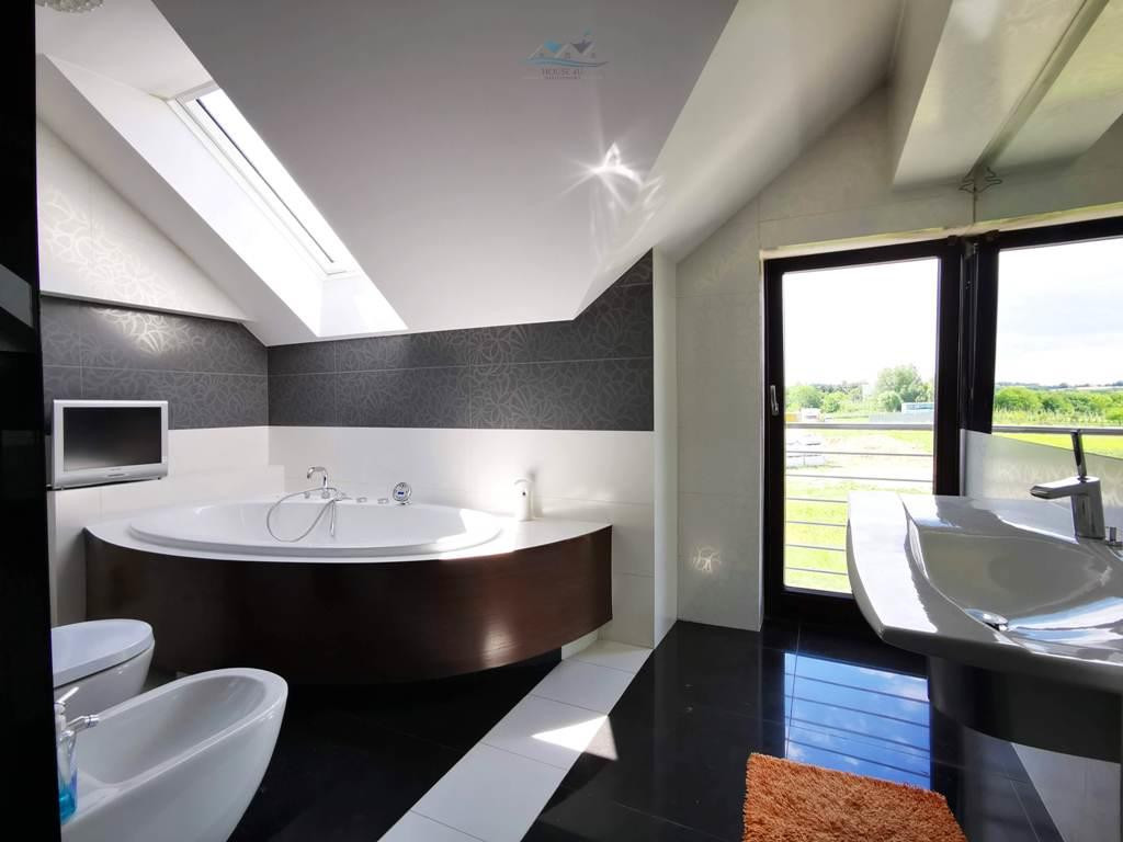 Do wykończenia domu wykorzystano bardzo dobrej jakości materiały, podłogi na parterze są z deski dębowej oraz gresu, w oknach zamontowane rolety rzymskie i granitowe parapety. Na piętrze deska barlinecka i gres. Dom ogrzewany piecem gazowym dwufunkcyjnym, dodatkowo na parterze ogrzewanie podłogowe, a w salonie kominek z rozprowadzeniem ciepła do dwóch sypialni.