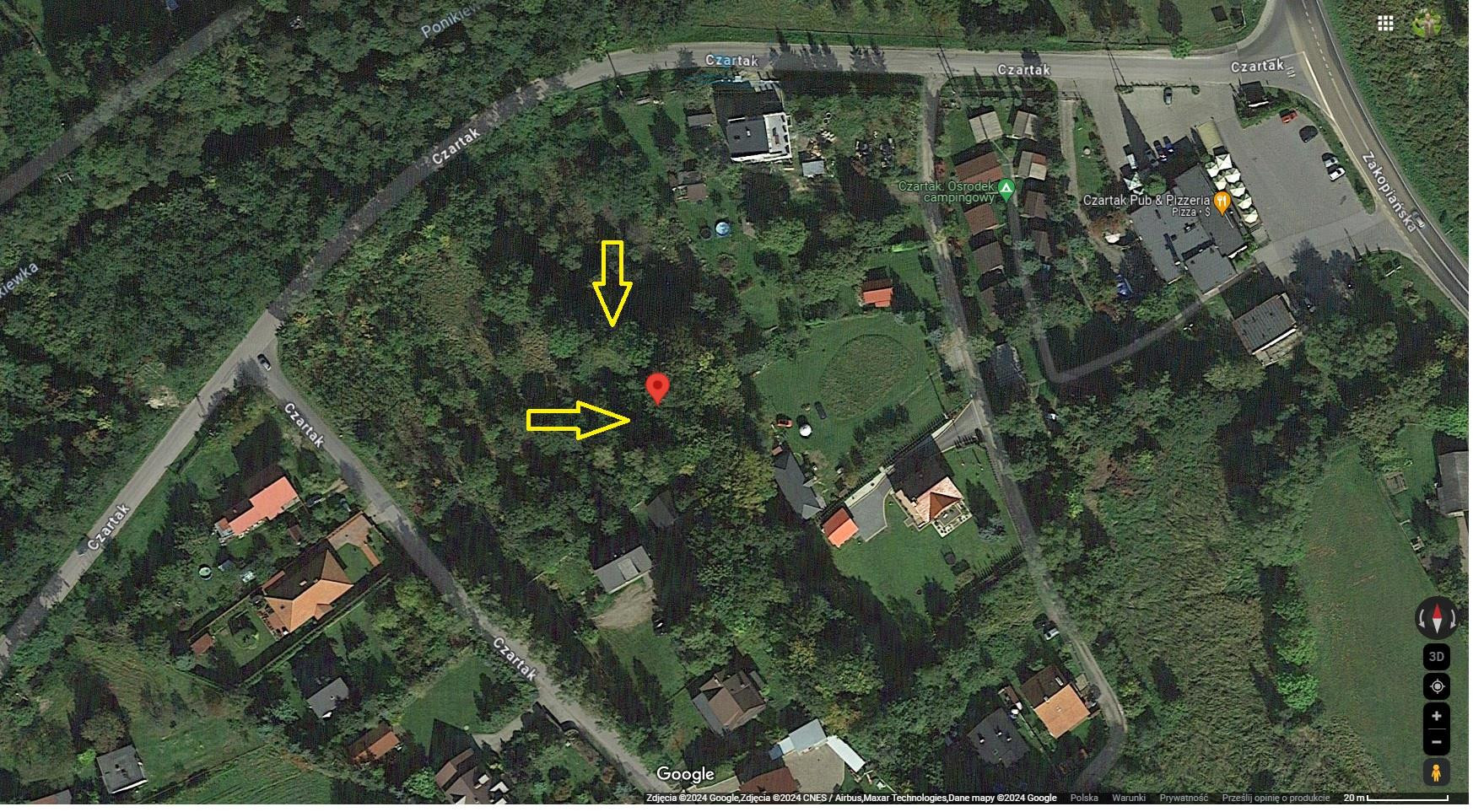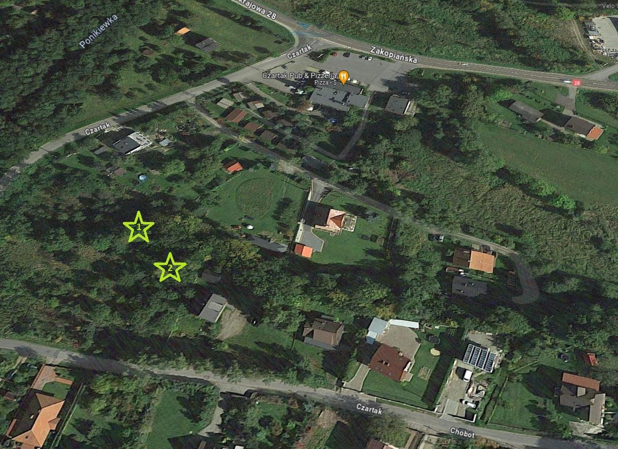 Działka złożona z dwóch działek (także dwie drogi dojazdowe) położone wśród zieleni i sporadycznej zabudowie jednorodzinnej, aktualnie porośnięte samosiejkami i krzewami (do wyplantowania) .