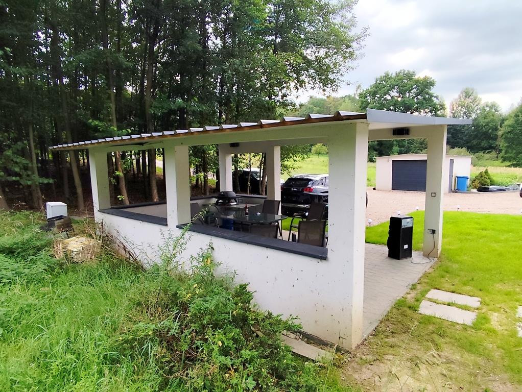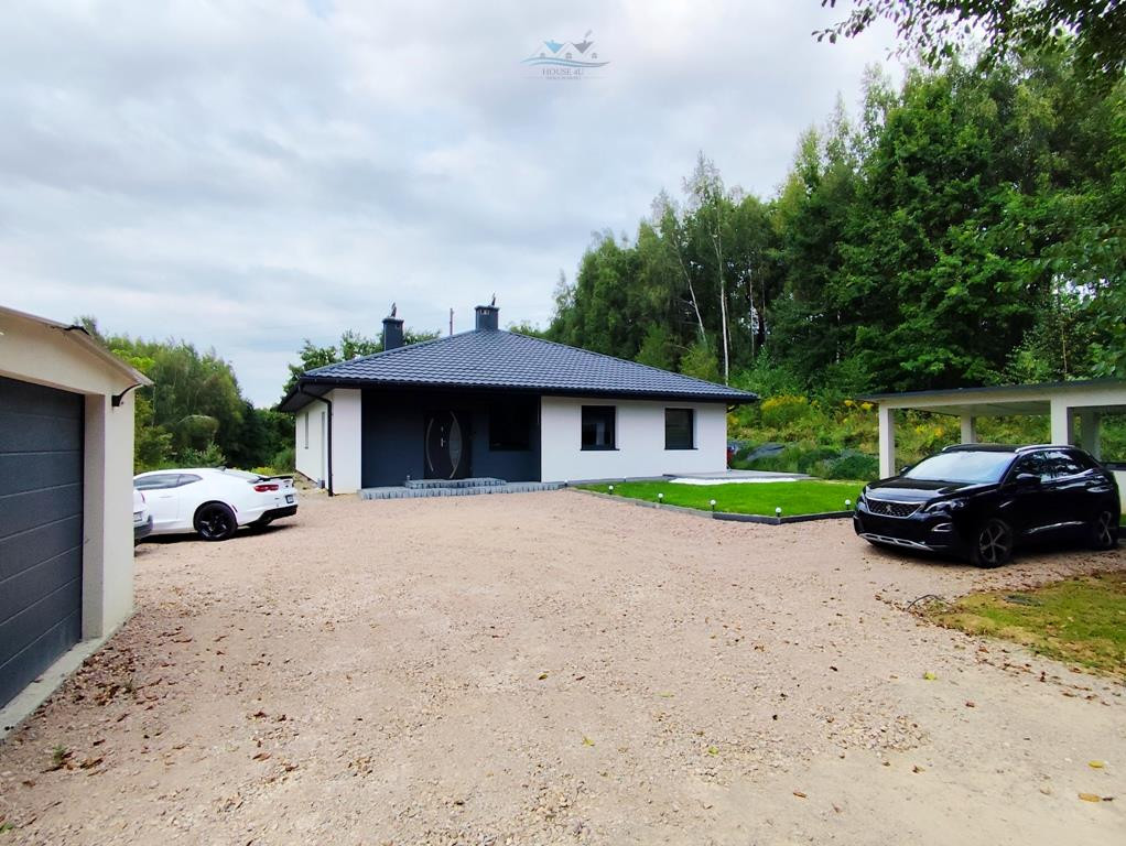 Budynek nowoczesny, parterowy, ukończony w 2021 roku, wykonany w technologii tradycyjnej (murowanej) wraz z wolnostojącym garażem oraz murowana altaną.