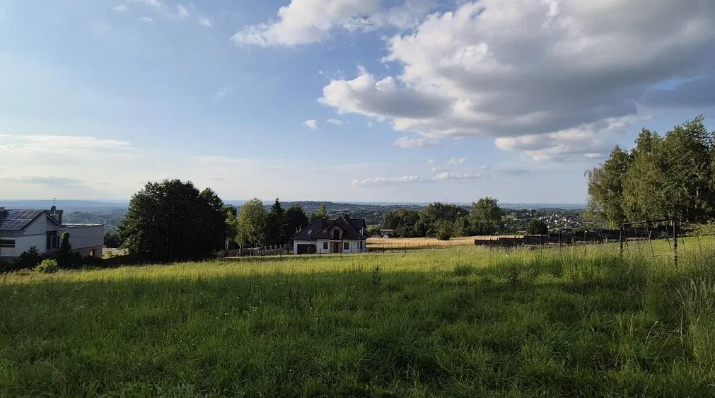 Działka ogrodzona, z dostępem do mediów, w całości budowlana, ustawna, widokowa na okoliczne wzgórza i Kraków.