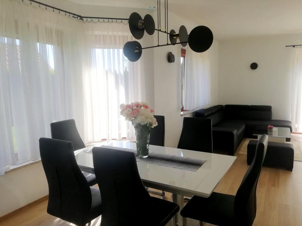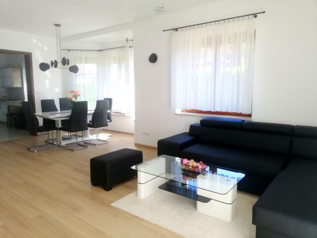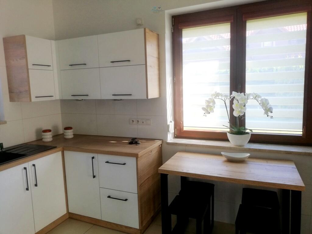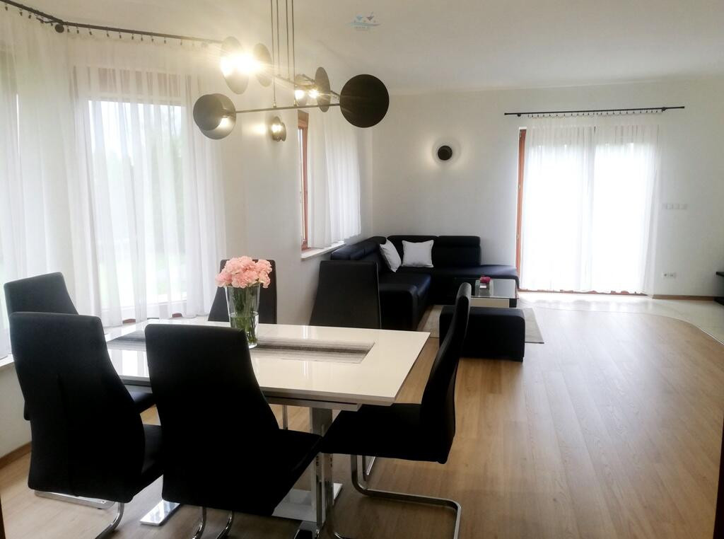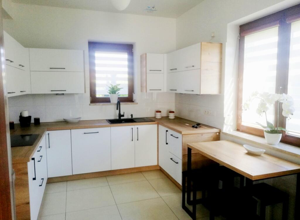 Dom w pełni wykończony i częściowo wyposażony, czysty i zadbany, kuchnia umeblowana i wyposażona w AGD (lodówka, zmywarka, płyta, piekarnik).