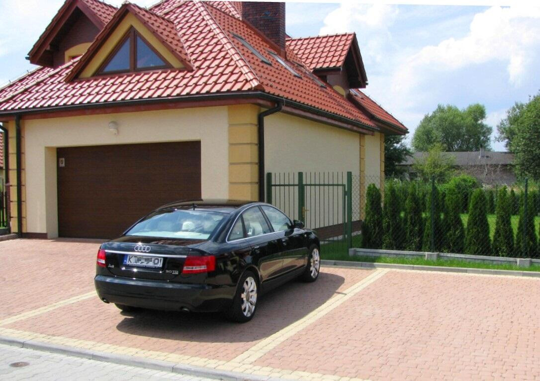 W bryle budynku garaż dwustanowiskowy połączony wejściem bezpośrednim z domem, przed budynkiem parking.