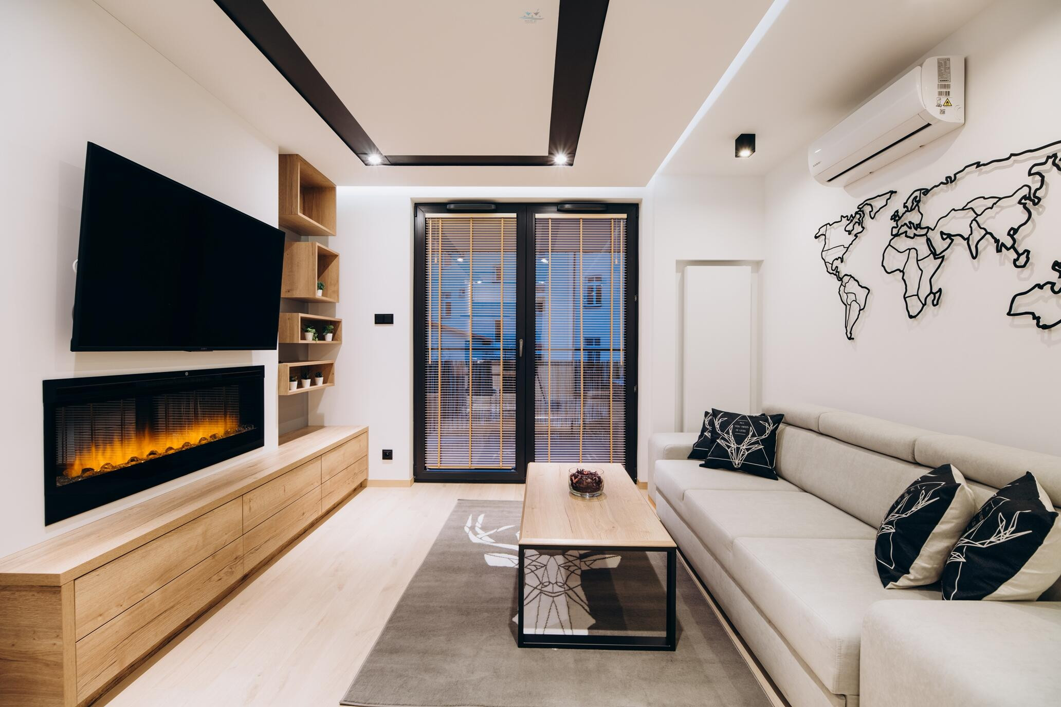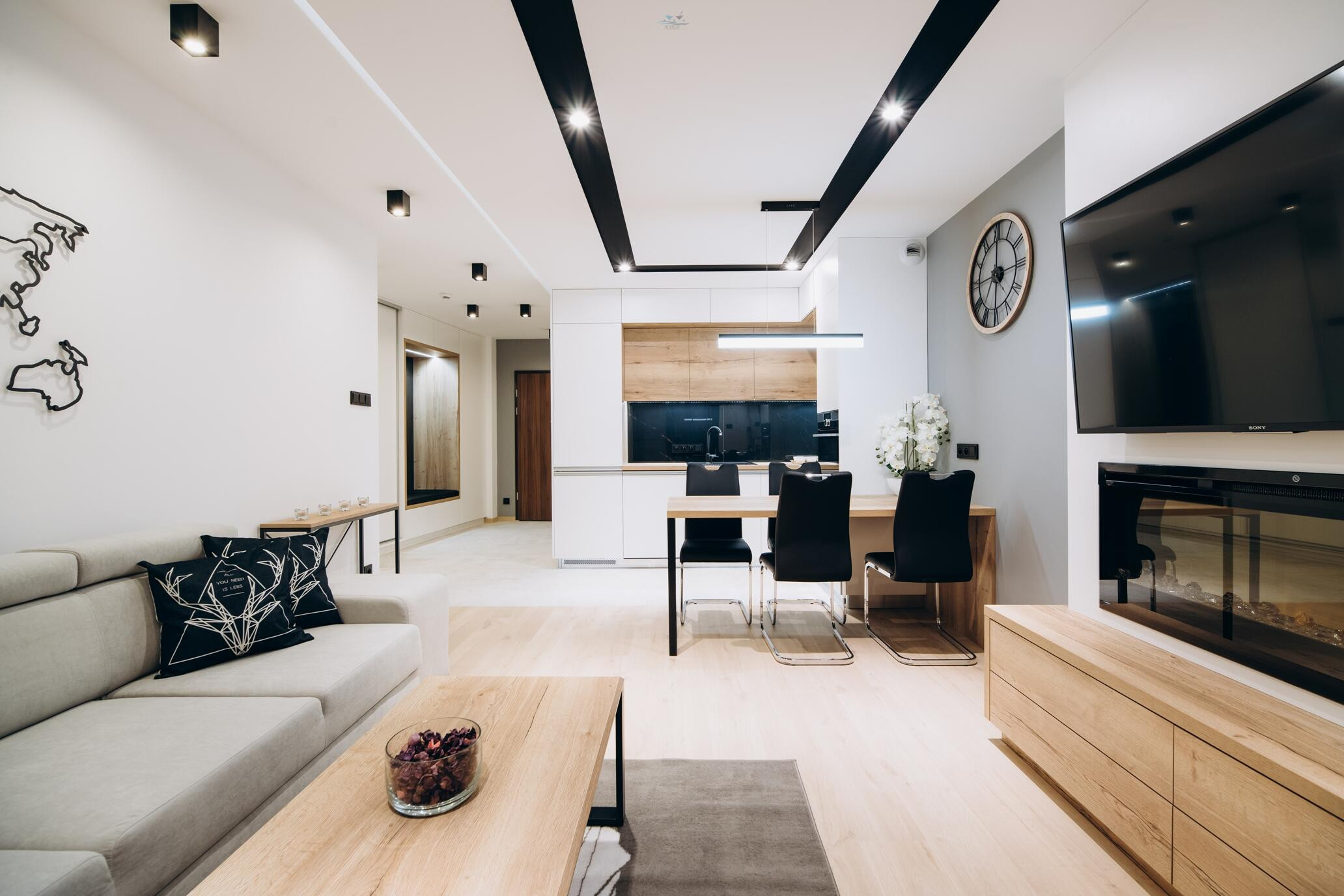Mieszkanie składa się z urządzonego salonu z aneksem kuchennym (kominek elektryczny, klimatyzacja), sypialni, balkonu z wypoczynkiem, łazienki z WC (pralka, suszarka), oraz obszernego holu z wbudowaną szafą - lokal w pełni wyposażony i gotowy do wprowadzenia się.
