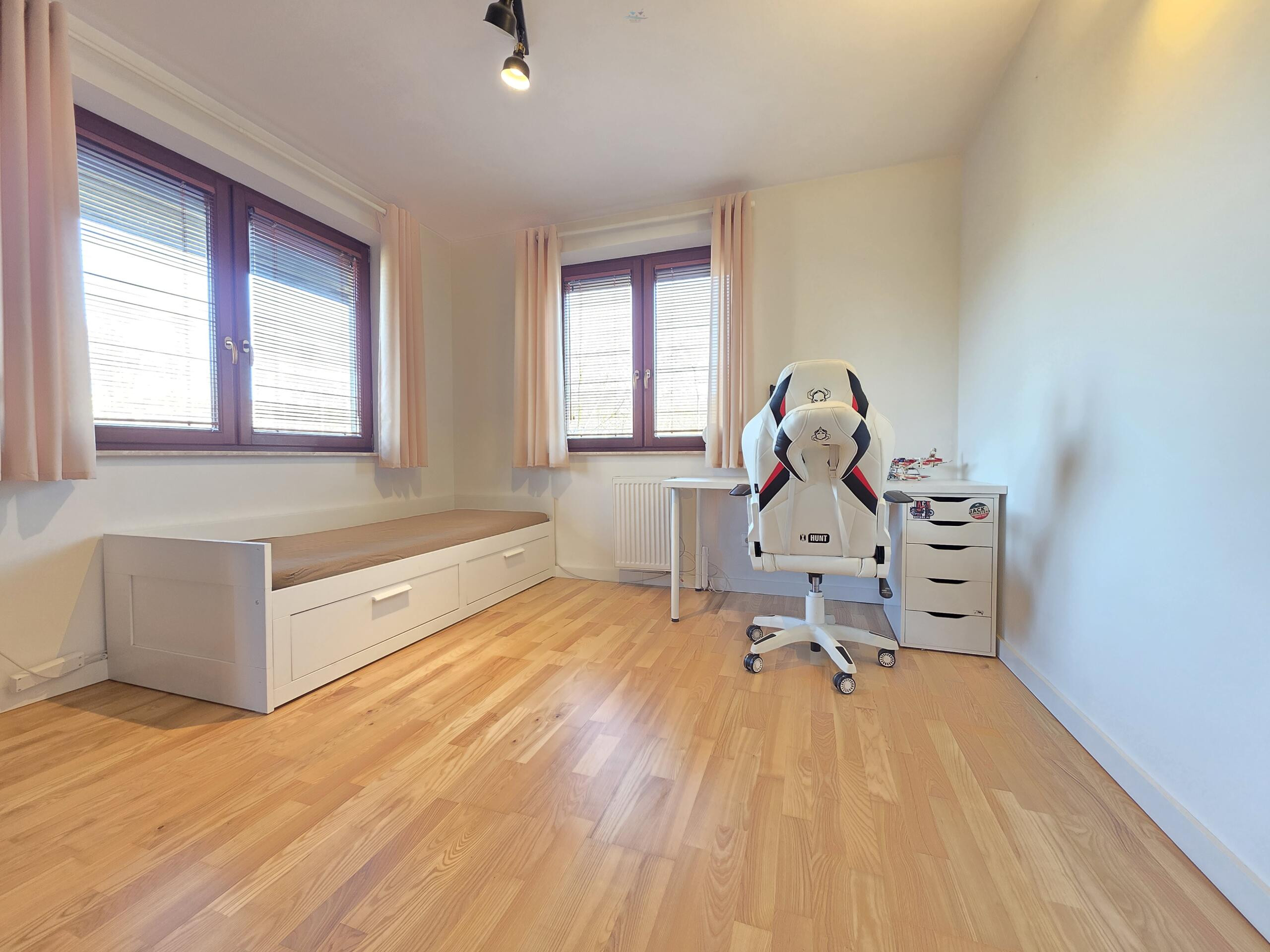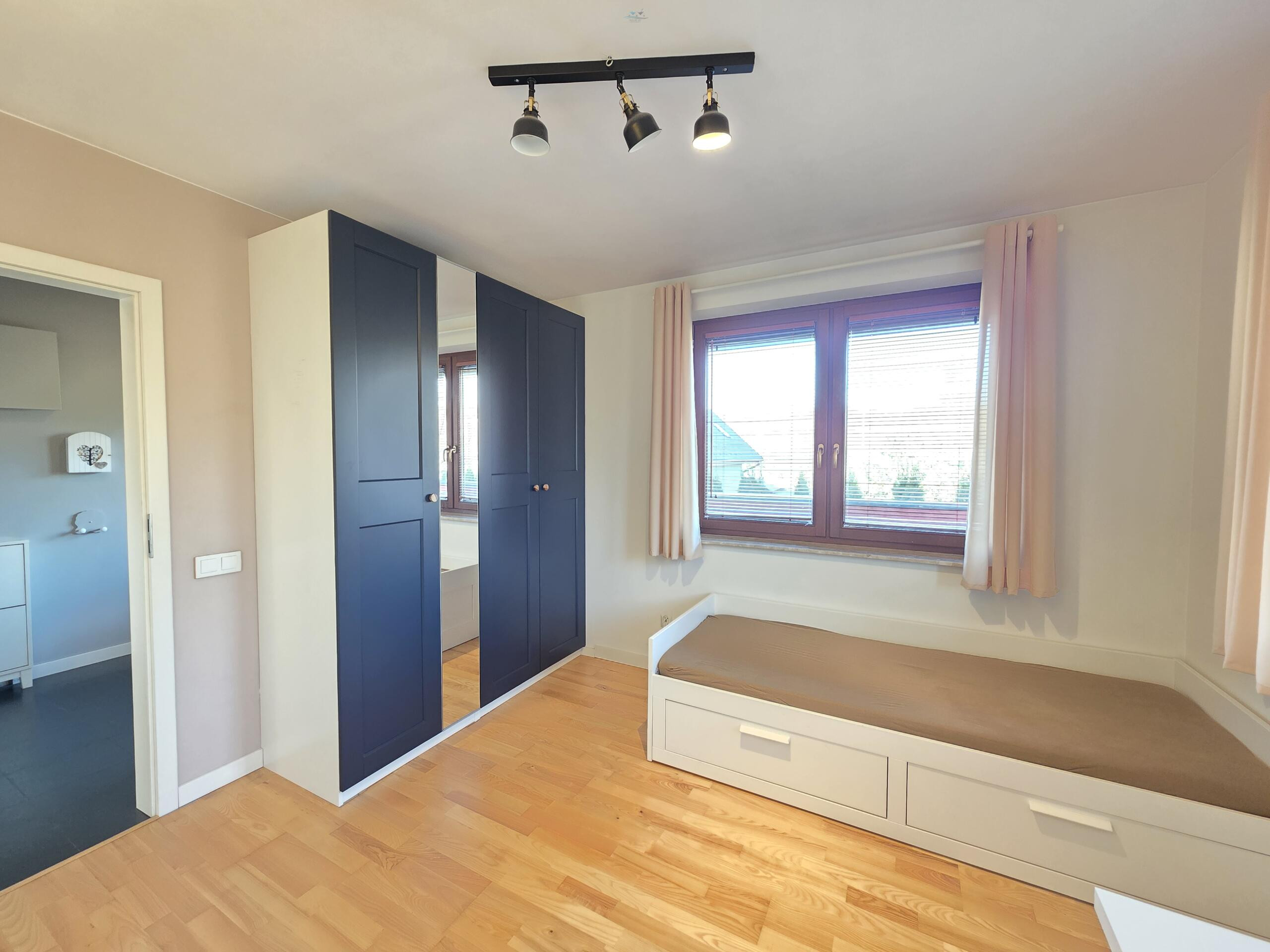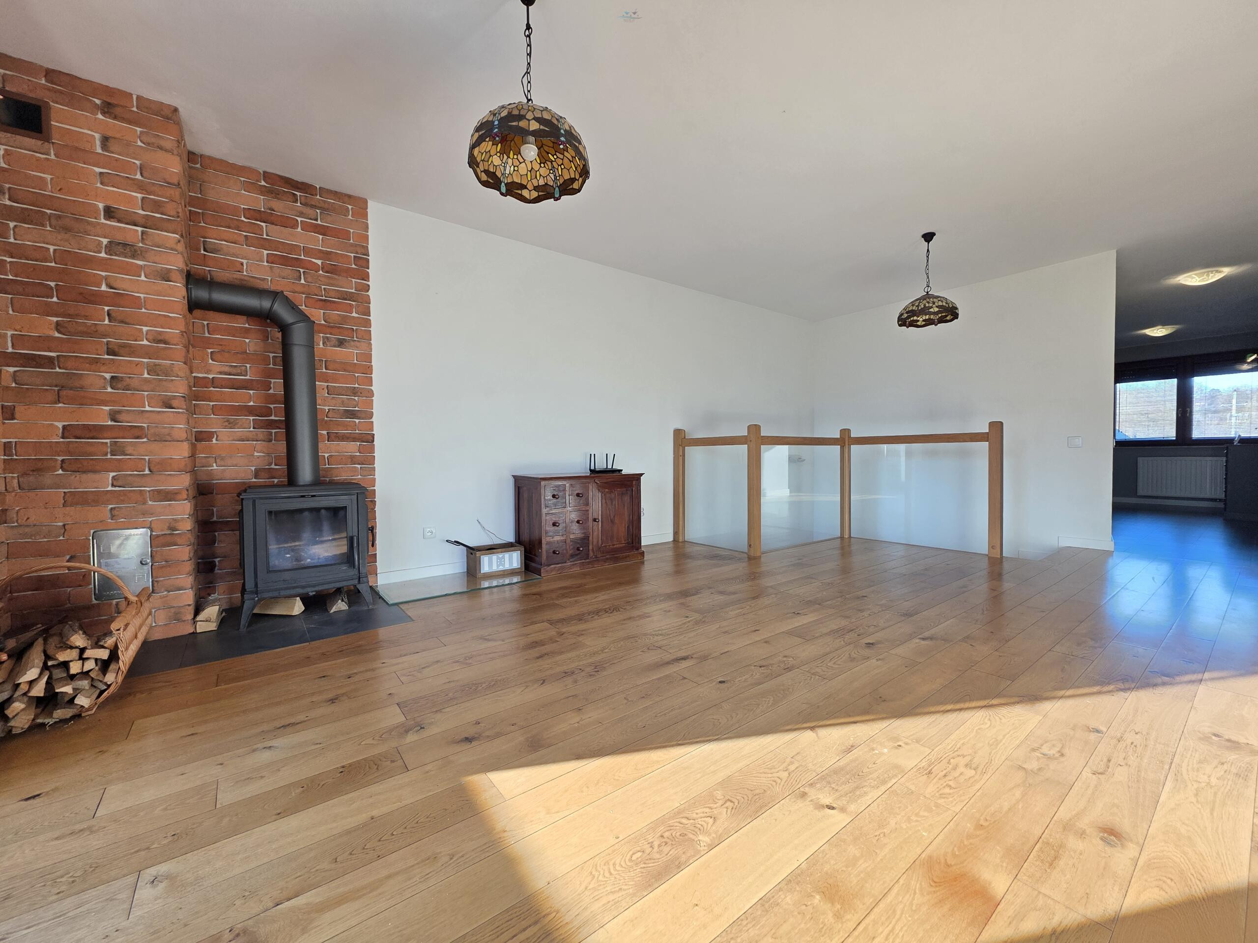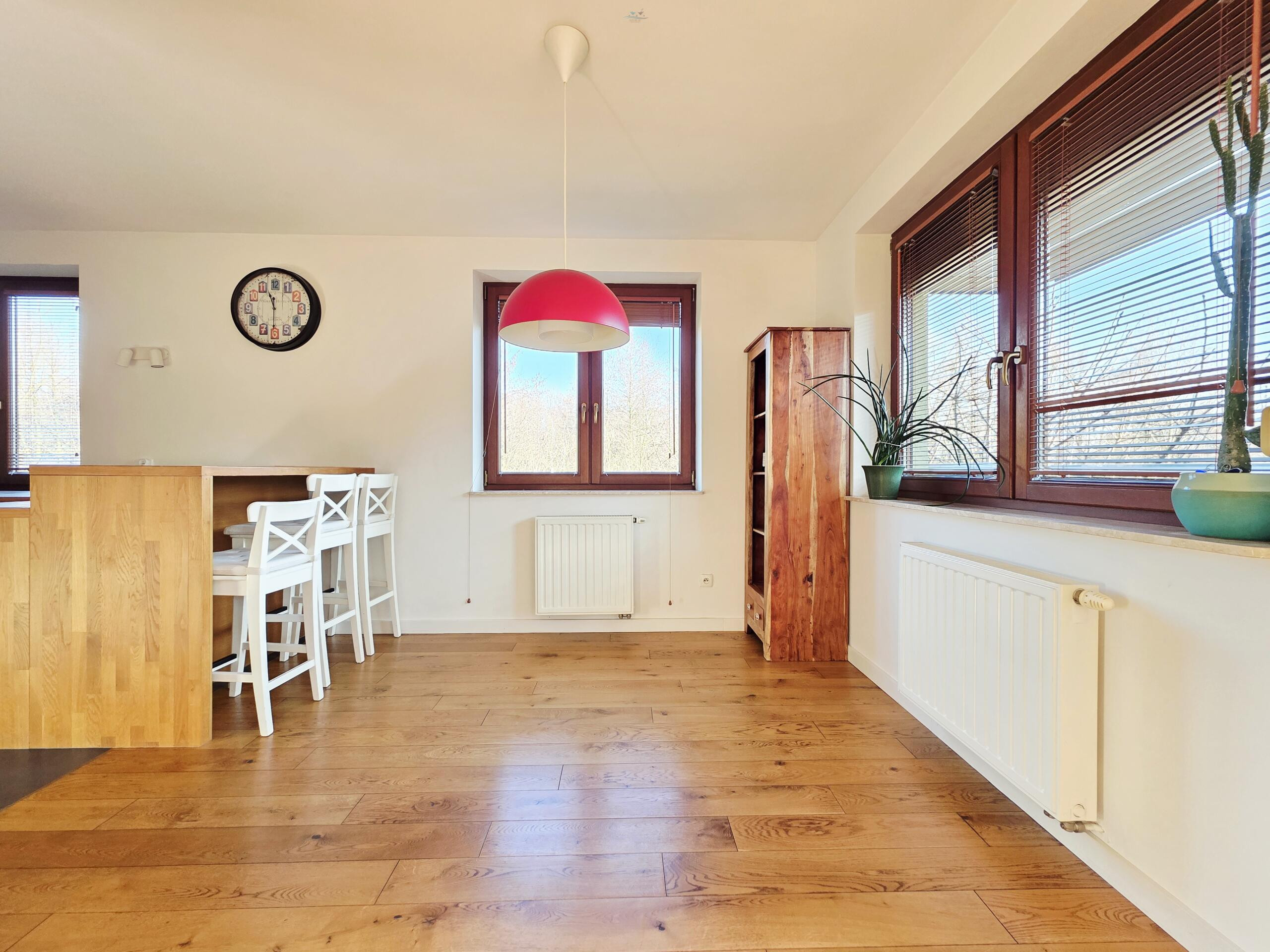 Apartament został urządzony z niezwykłą dbałością o szczegóły. Jest przestronny, a duża liczba okien skierowanych na trzy strony świata sprawia, że wnętrze jest jasne i pełne naturalnego światła. Duży, jasny salon z oknami połączony jest z jadalnią i kuchnią. W salonie znajduje się również kominek. Podłoga wyłożona jest deską trójwarstwową. Światłowód umożliwia pracę zdalną w warunkach domowych. Apartament oferuje cztery wygodne sypialnie, jedna z nich jest przejściowa – idealne rozwiązanie dla rodziny z dziećmi lub osób zdalnie pracujących. Wnętrza są w pełni wykończone, utrzymane w nastrojowym i ciepłym stylu. Drewniane elementy oraz neutralne kolory dodają wnętrzu uroku.