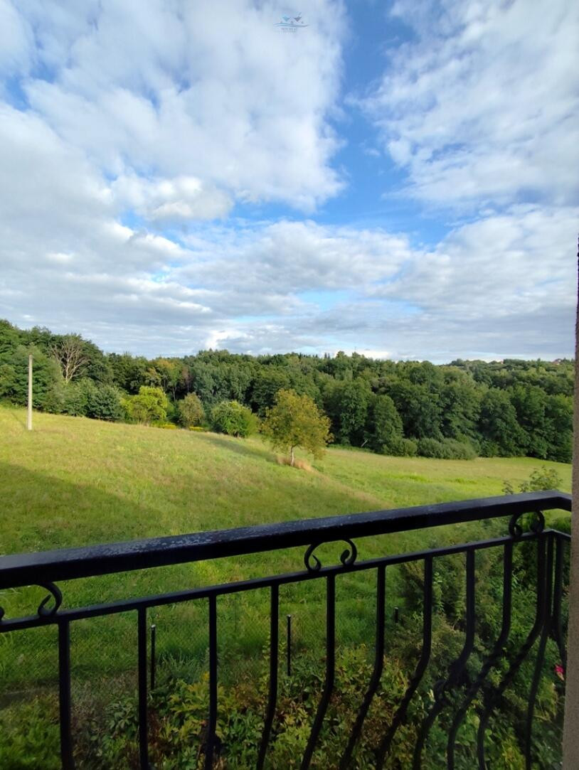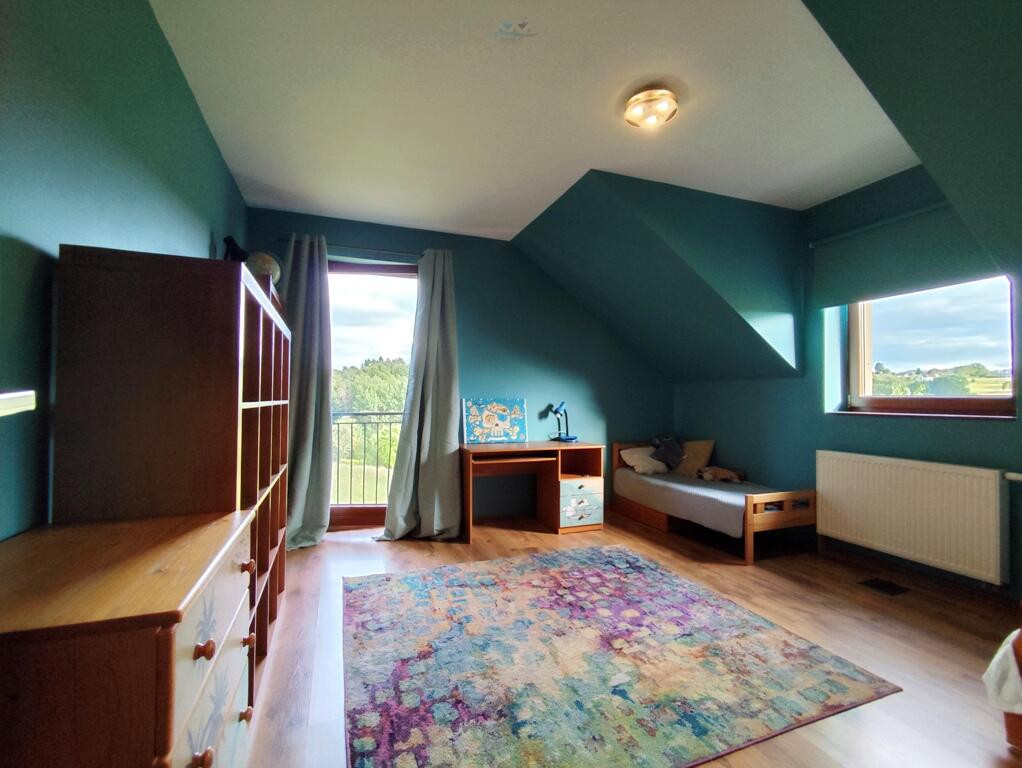 Z okien mieszkania oraz działki piękny widok na otaczającą dom spokojną i aktualnie białą (latem zieloną) okolicę.